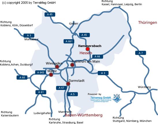 Im Gewerbegebiet 'Am Lachbach' finden Sie gut ausnutzbare Grundstücke unterschiedlichster Größe. Die unmittelbare Lage an der Autobahnauffahrt zur A45 und somit die gute Erreichbarkeit des gesamten Rhein-Main-Gebietes sind neben dem günstigen Preis gute Argumente für Hammersbach.